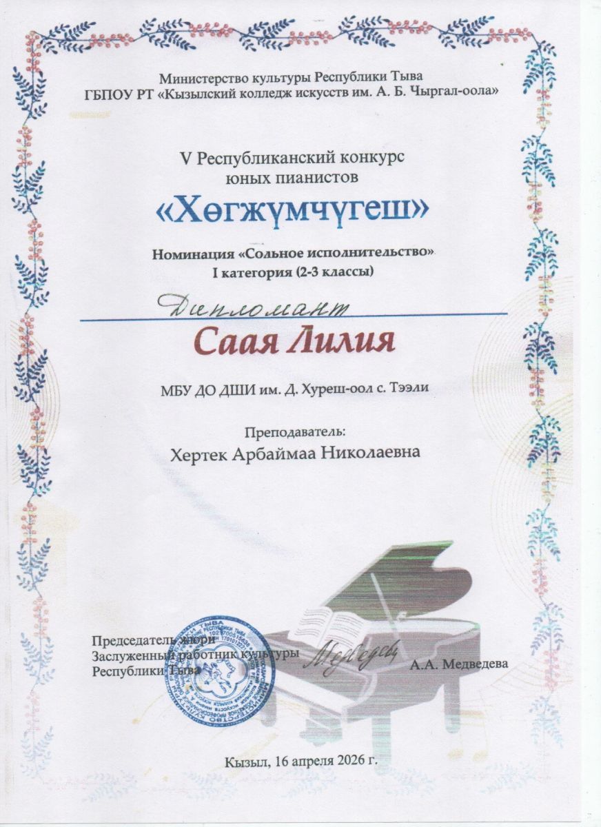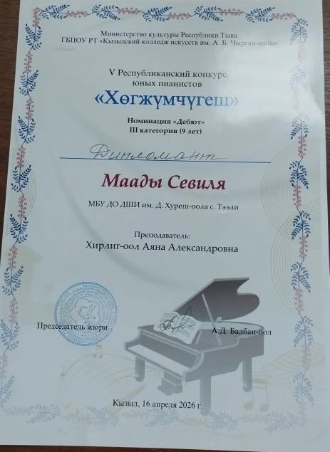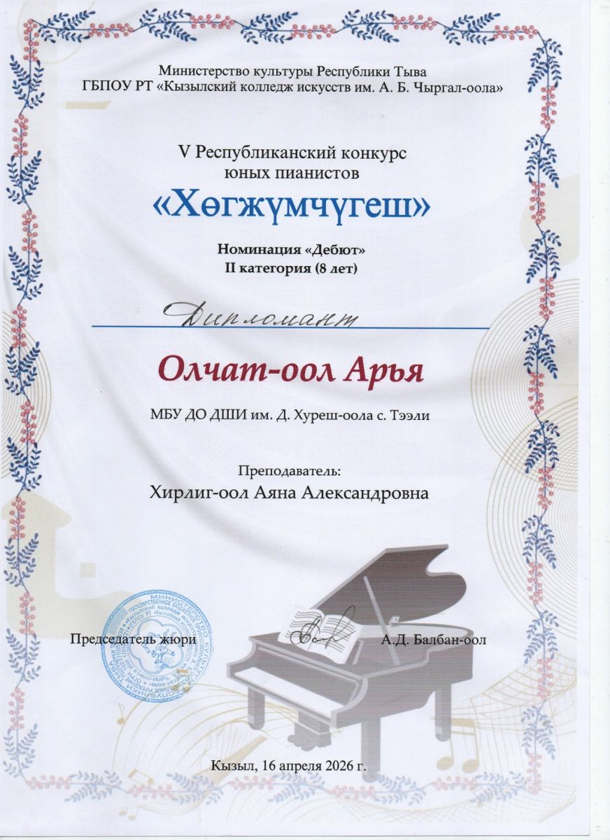 Хирлиг-оол Аяна Александровна Концертмейстер